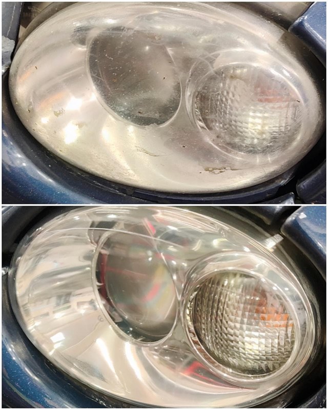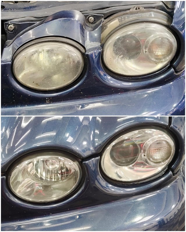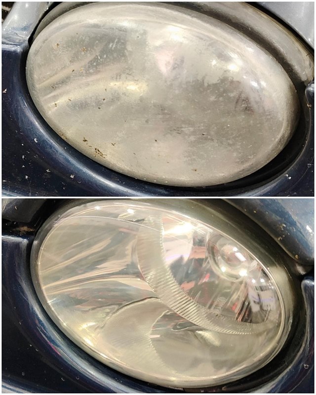 Restauración de ópticas estropeadas y quemadas por el sol con tecnología de polímero líquido vaporizado